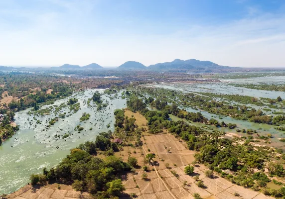 4000 섬은 메캇 폭포의 웅장함과 강을 따라 펼쳐진 야자수 숲으로 유명한, 자연과 함께하는 여행을 원하는 이들에게 추천되는 관광지입니다.
