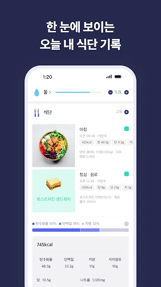 - 식단 사진과 식사 시간을 저장해 나만의 식단 일기를 완성해 보세요