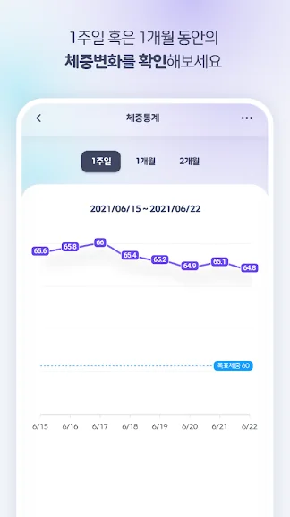 - 기간별로 내 몸무게가 어떻게 변화했는지 깔끔한 그래프와 통계로 정리해 드려요