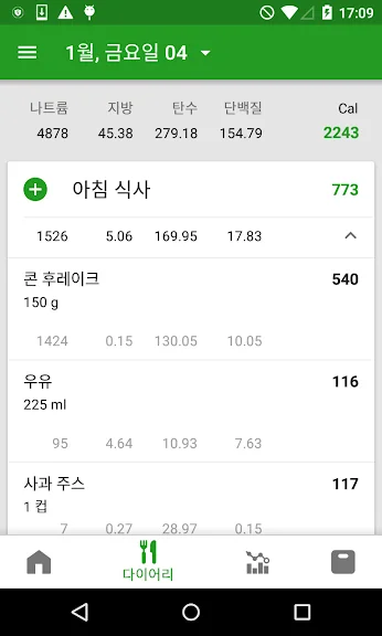 - 오늘 먹은 음식을 식단에 기록해 보세요. 칼로리와 탄단지 섭취량을 자동으로 계산해 드려요