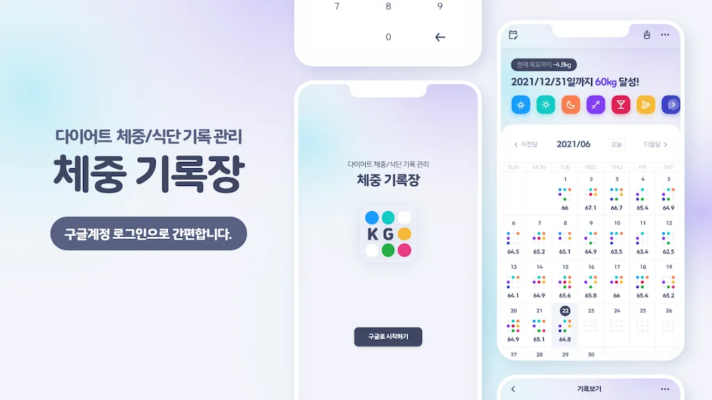 아래는 체중 기록장 - 다이어트 체중/식단 기록 관리 어플에 대한 스크린샷 정보입니다.