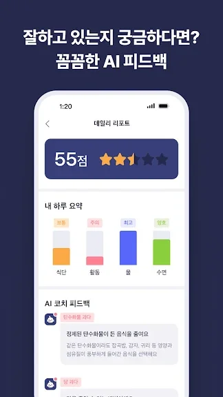 - 다이어트 목표를 달성할 수 있도록 식단, 운동, 다이어트에 대한 실시간 피드백은 물론 매일 AI 코치가 분석한 다이어트 리포트를 확인할 수 있어요.