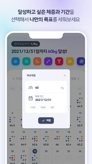 달성하고 싶은 체중과 기간을 선택해서 나만의 목표를 세워보세요
