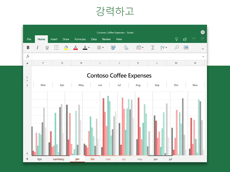 이동 중에 작업을 검토하거나 예산을 세우세요. 강력한 서식 도구와 훌륭한 기능을 사용하여 스프레드시트를 사용자 지정하세요. Excel을 사용하면 특정 요구 사항에 맞춰 스프레드시트를 작성할 수 있습니다.
