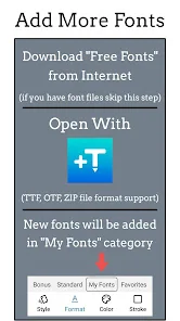 900가지 이상의 폰트를 수록하고 있으며, 웹에서 다운로드한 폰트를 이 앱에서 읽어올 수 있습니다.