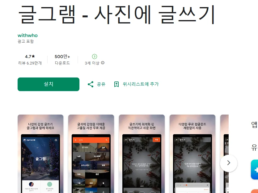 1) 글그램 - 사진에 글쓰기 어플 소개