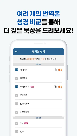 * 오디오 성경은 일부 번역본에서만 지원하며 다운로드가 불가함.