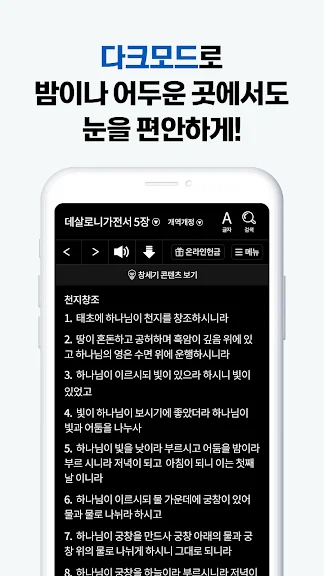 * 폰트, 글자 크기, 명암 조절 등을 설정해 말씀을 더 쉽게 읽을 수 있습니다.