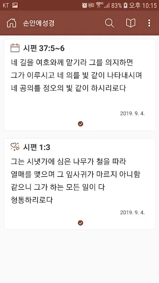 손안에성경으로 성경 구절을 정말 쉽게 찾을 수 있습니다.