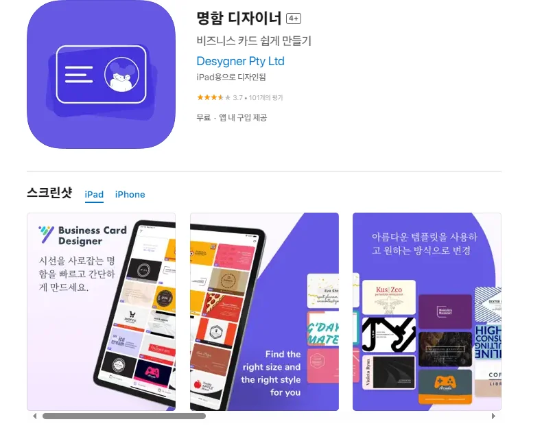 아래는 아이폰 명함 디자이너 어플에 대한 자세한 설명입니다. 참고하세요.