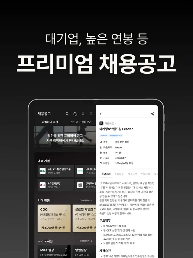 - 커리어를 확장해 줄 프리미엄 공고들을 탐색해보세요.