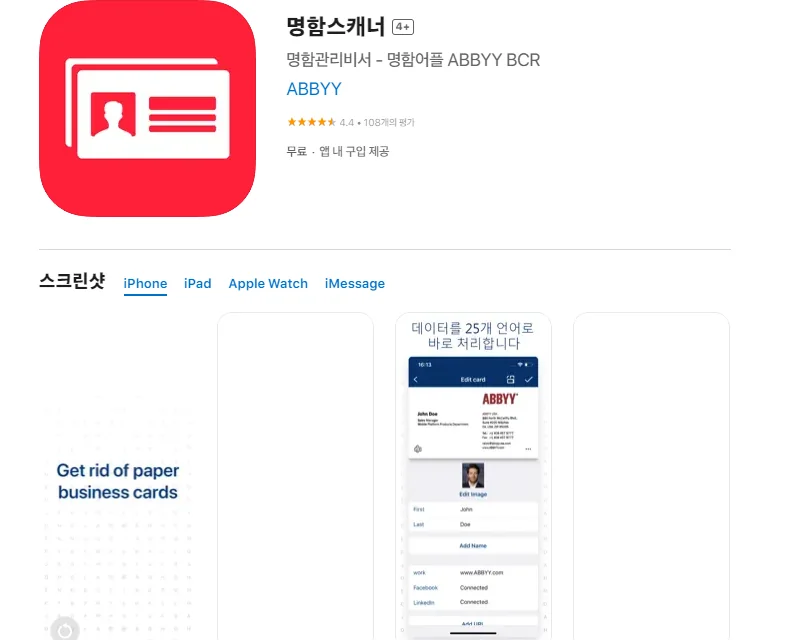 아래는 아이폰 명함스캐너 어플에 대한 자세한 설명입니다. 참고하세요.