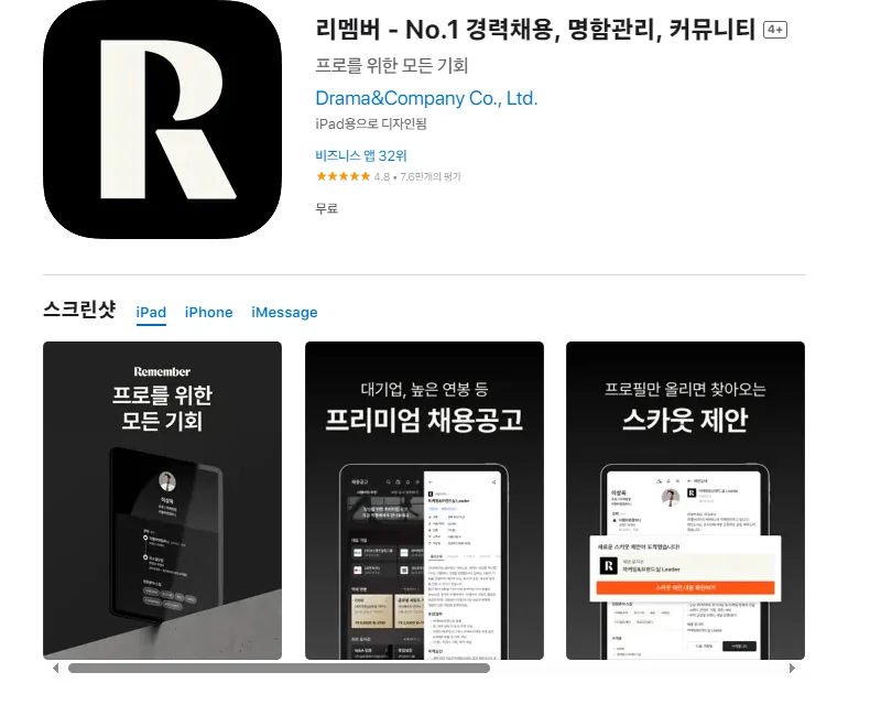 3. 아이폰 리멤버 - No.1 경력채용, 명함관리, 커뮤니티 앱