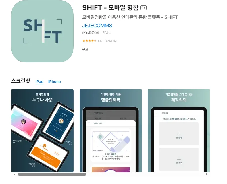 아래는 아이폰 SHIFT - 모바일 명함 어플에 대한 자세한 설명입니다. 참고하세요.