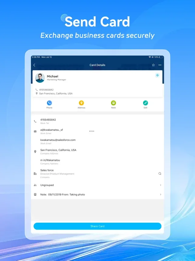 디지털 명함에 연결된 전문적인 이메일 서명을 만들고 가상 배경을 디자인하여 브랜드를 소개할 수 있습니다.