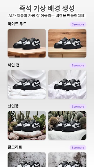 무슨 마법이냐고요? 이 앱은 사진 속의 물건과 인물을 자동으로 자릅니다. 한 번만 탭하면 배경이 제거되고, 고객님의 제품이나 모델을 멋지게 연출한 아름다운 이미지가 생성됩니다. 흰색 배경을 선택하거나, 원하는 배경을 선택하세요. 조명을 수정하고, 텍스트나 로고 또는 스티커를 추가하고, 콜라주를 만드세요. 또는, **1000**개가 ****넘는 ****배경 ****템플릿 중 하나를 사용해 보세요. 사진 스튜디오와 디자인 스튜디오가 모두 손 안에 있는 것처럼 놀라운 효과를 발휘합니다!